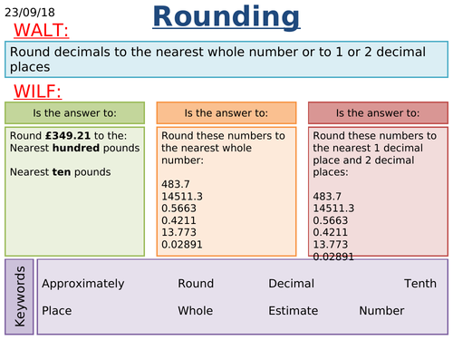 Results section for students to record their own working level. 3 parts lessons. Rounding up and rounding down.